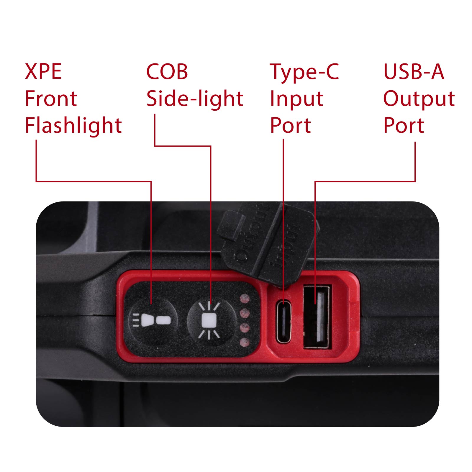 - Function : COB Side-light, Front Flashlight, Built-in Toolbox, USB Powered, Built-in Rechargeable Battery