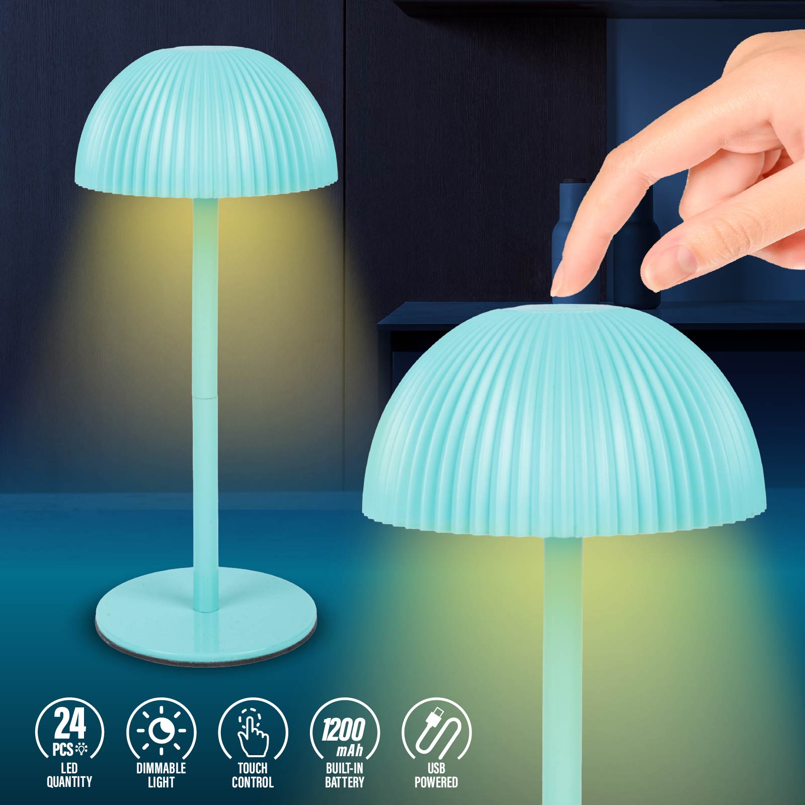 - Function : Light Adjustable, Touch Control, USB Powered, Built-in Rechargeable Battery
