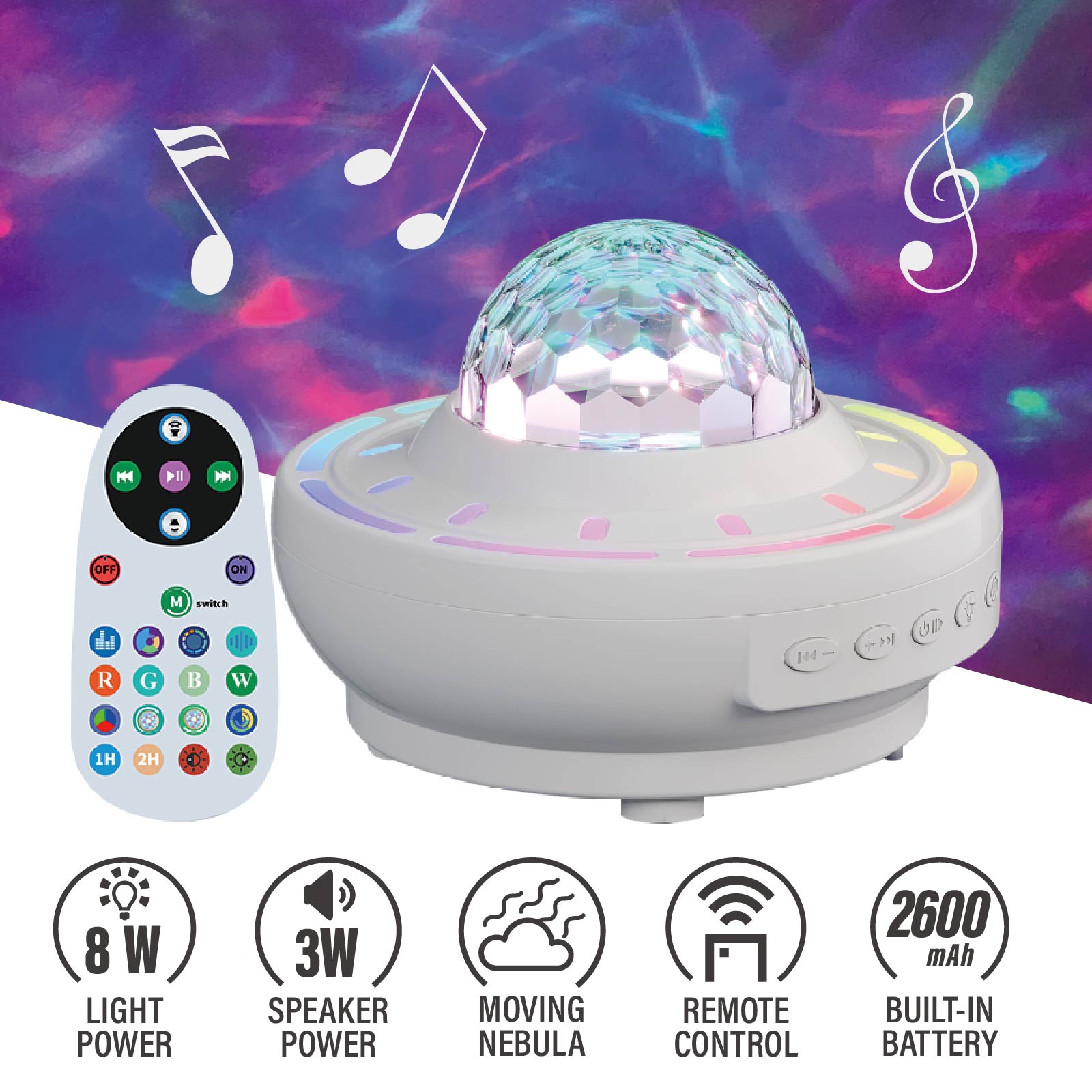 - Function : Bluetooth Speaker, Projection Light, White Noise, USB Powered