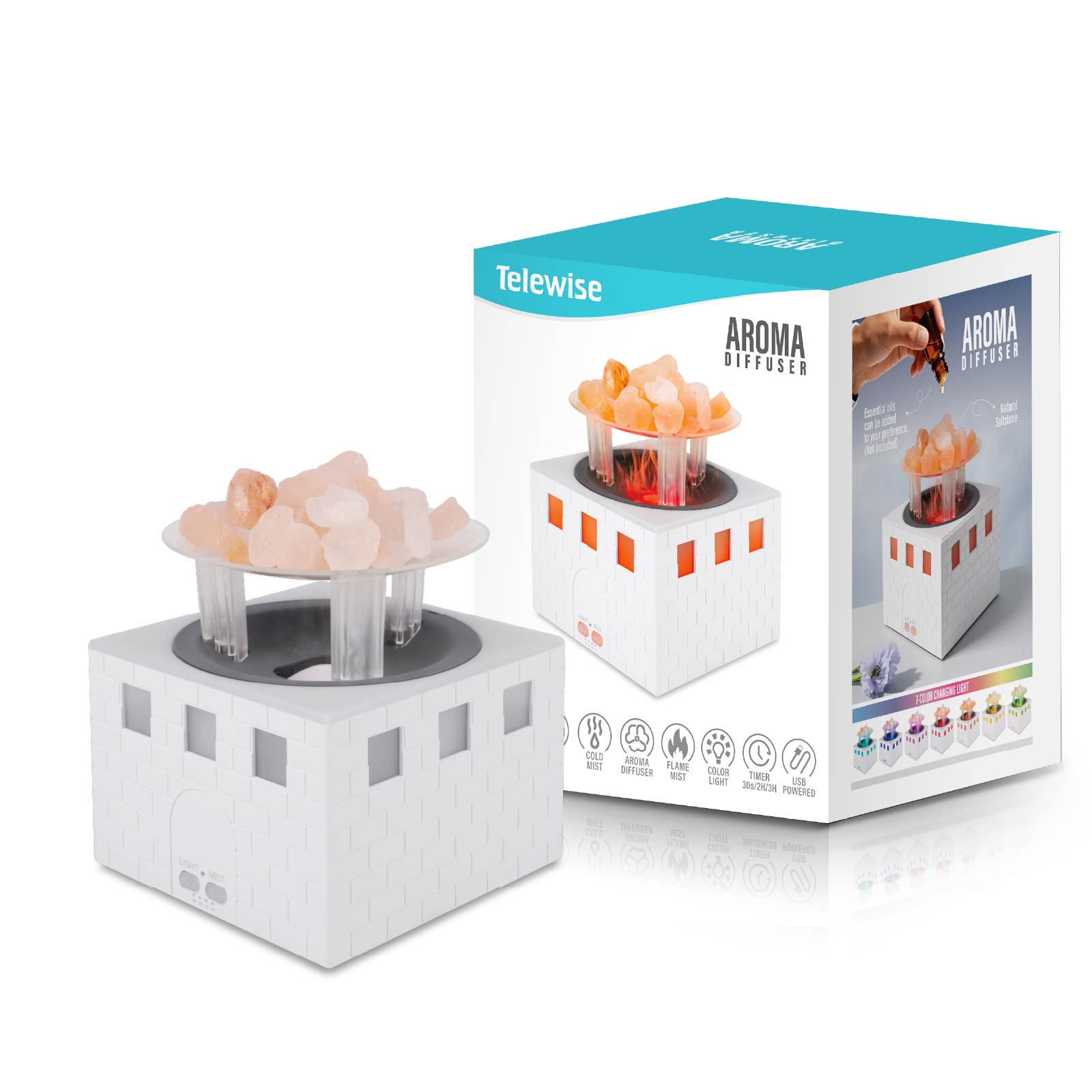 EAH-137Elevate your space with our Salt Stone Flame Light Aroma Diffuser! Authentic salt stone purifies air, lifelike flame light casts warm glow, and ultrasonic mist diffuses your favorite essential oils—all in one