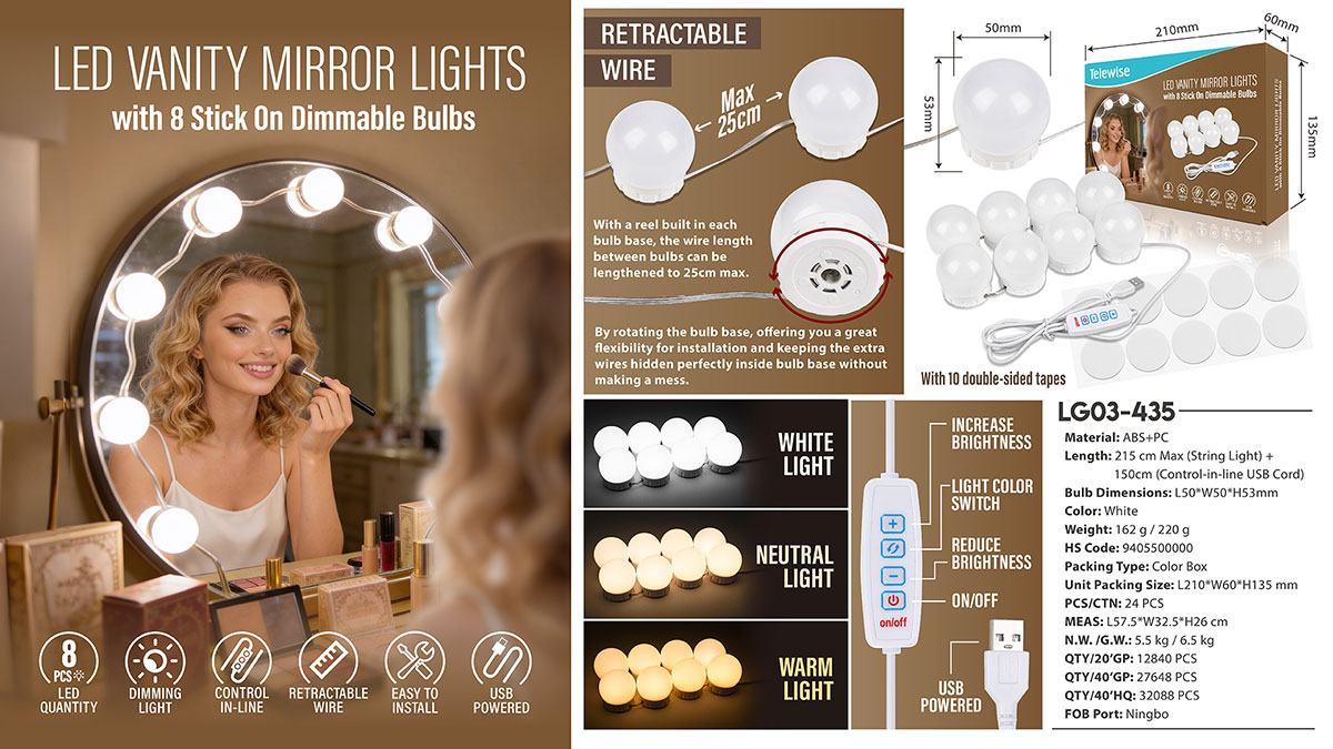 LED Vanity Mirror Lights (8 Bulbs)