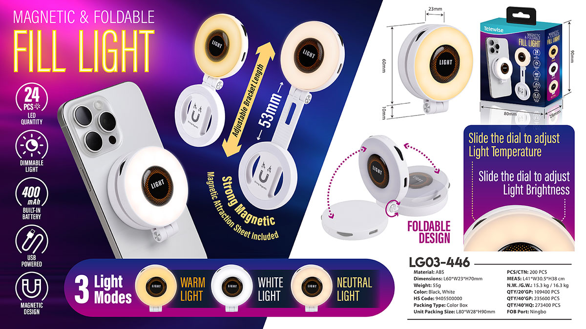 LG03-446The fill light design can be quickly flipped into a selfie light or photography light to enhance background lighting