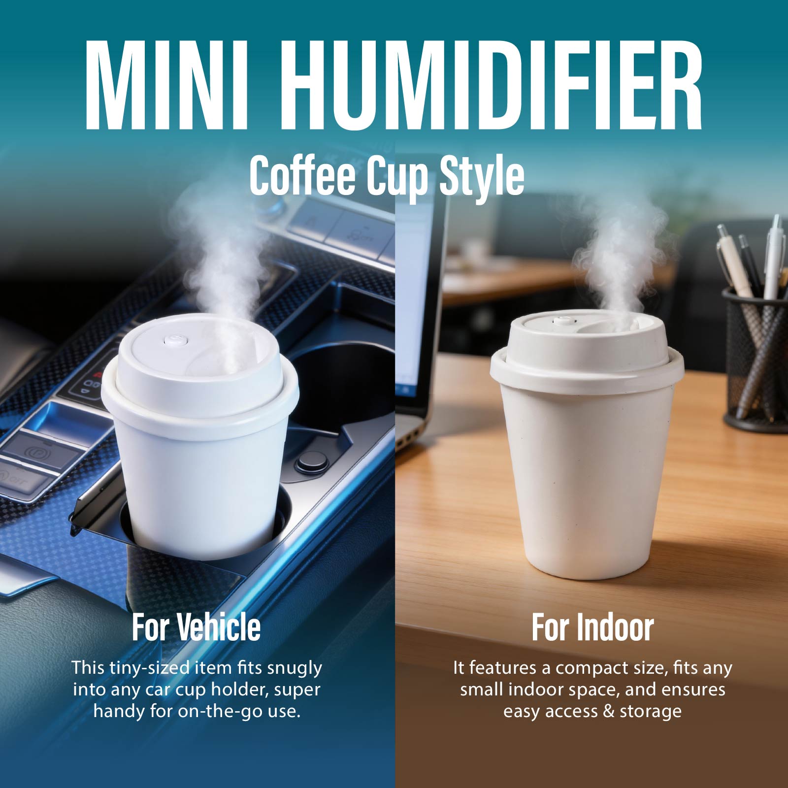 EHU-057Elevate the look of your space, create an uplifting and welcoming space. For Vehicle: This tiny-sized item fits snugly into any car cup holder, super handy for on-the-go use. For Indoor: It features a compact size, fits any small indoor space, and ensures easy access & storage.