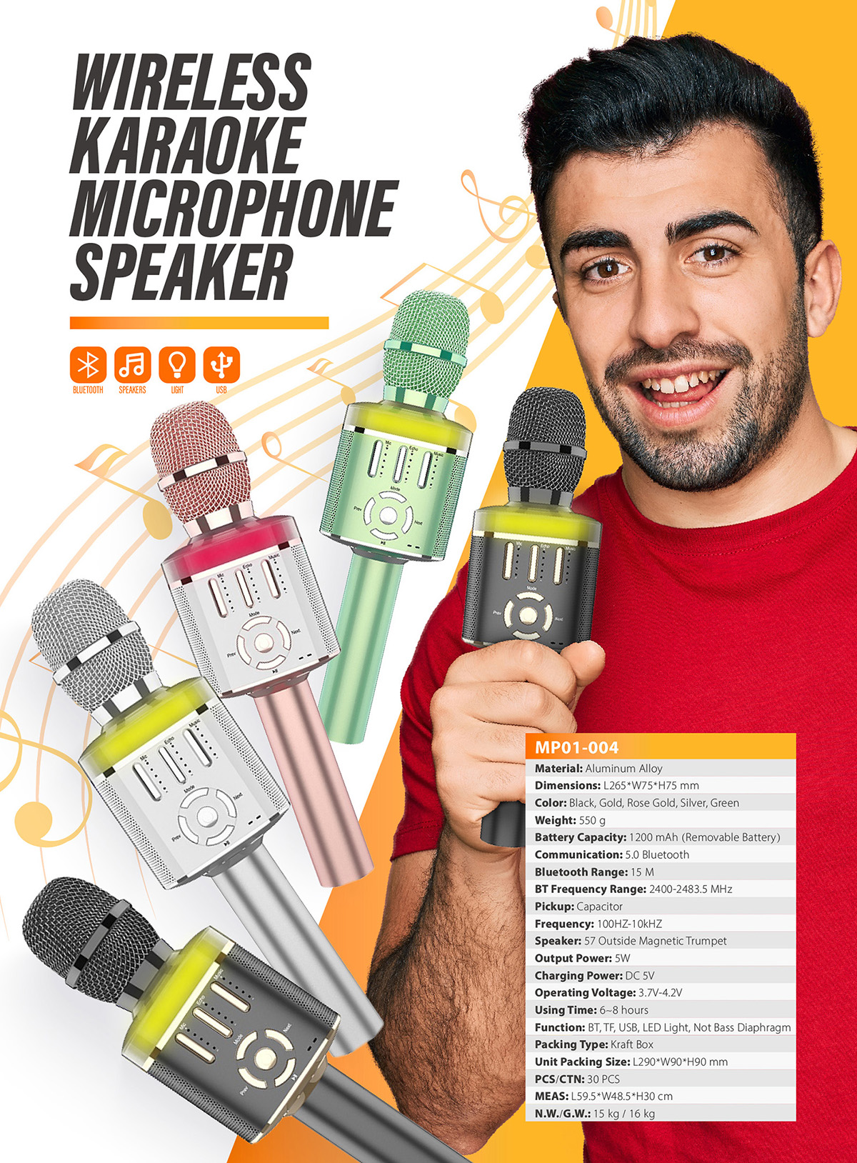 MP01-004Portable handheld karaoke mic speaker machine.