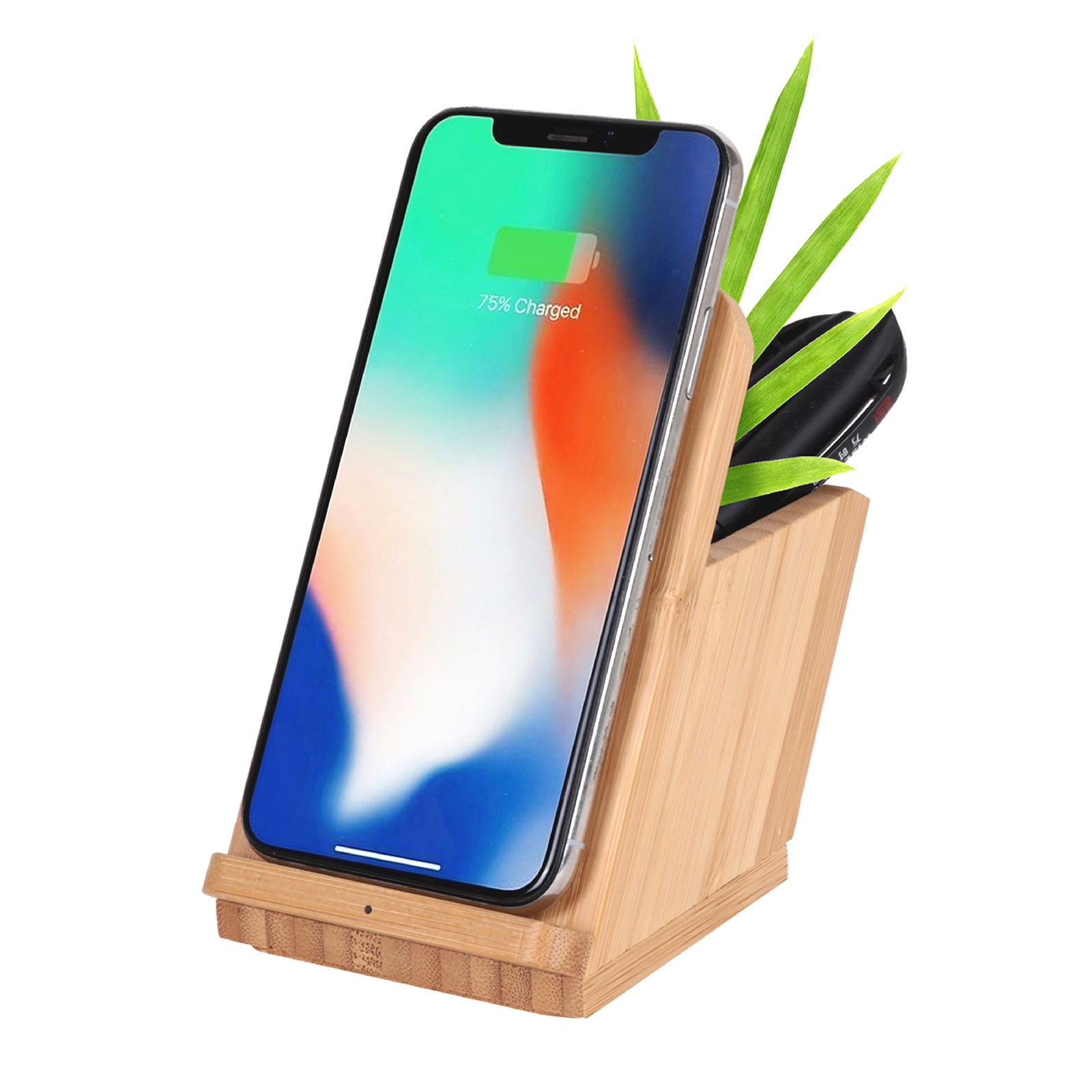 Bamboo Wireless Charger Phone Stand Brush Pot