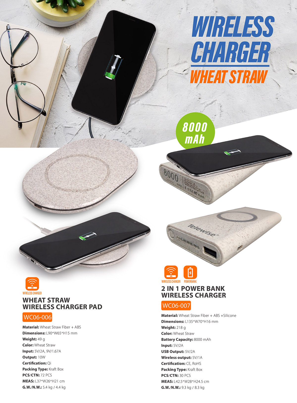 2 In 1 Wheat Straw Wireless Charger & Powerbank