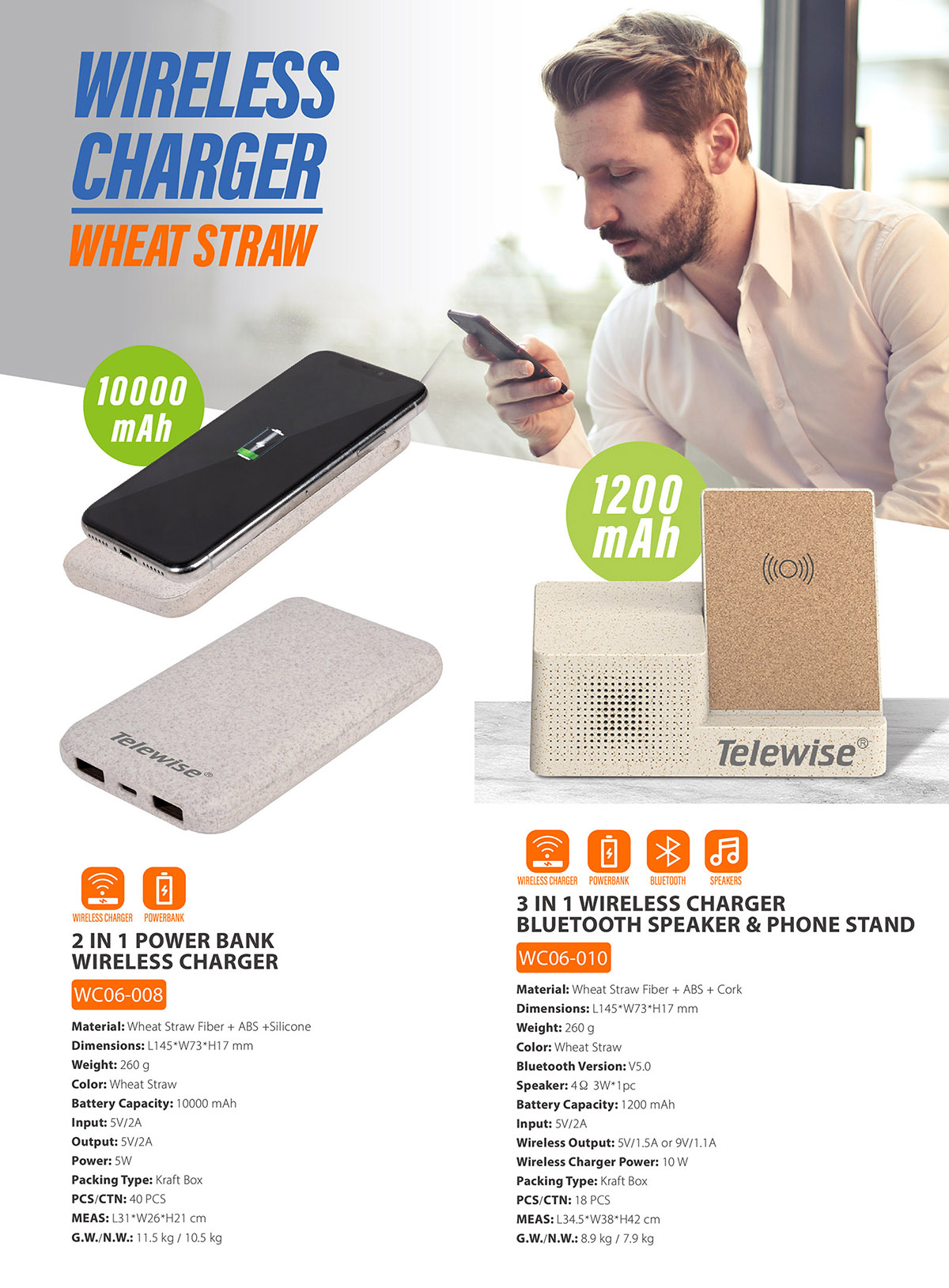 2 In 1 Wheat Straw Wireless Charger & Powerbank