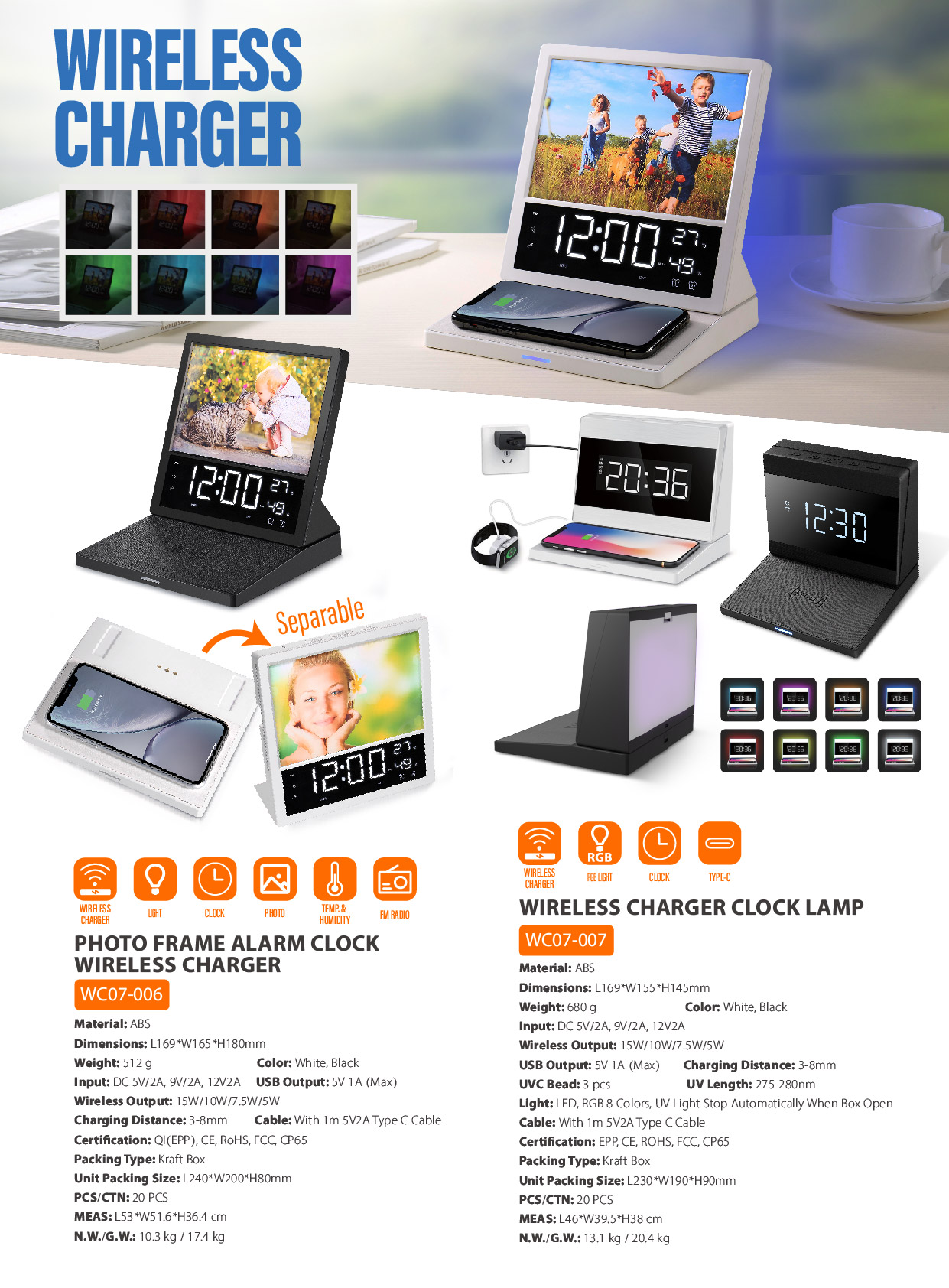 WC07-006LED Desk Lamp, alarm Clock, Photo Frame, Wireless Charger, are integrated into one design. you can take it anywhere, which brings convenience to your life.