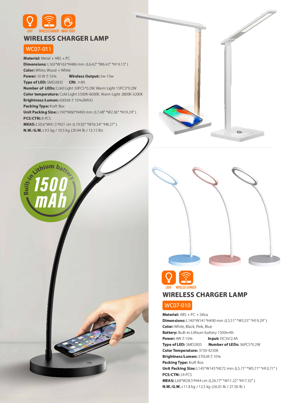 WC07-011LED Desk Lamp, Wireless Charger, are integrated into one design. you can take it anywhere, which brings convenience to your life.