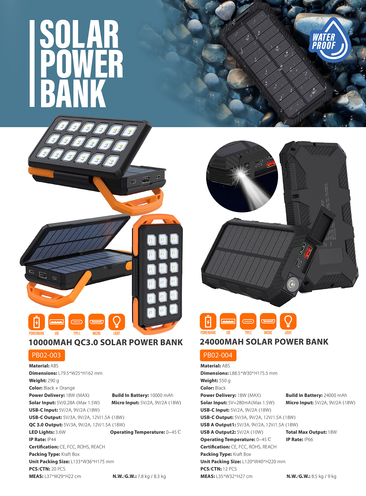 PB02-003Outdoor Essentials, equipped with solar panel, just hang it on your backpack to get recharge via sunlight. Sturdy durable and compact size.
