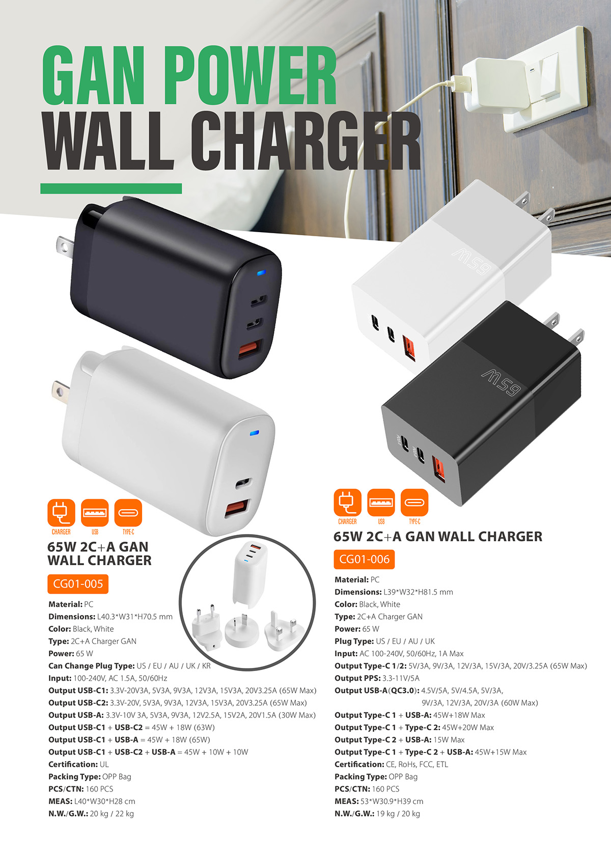 CG01-006Compared with ordinary charger (silicon), GaN charger performance is exponentially improved, providing excellent heat dissipation and high-speed charging, small but powerful.