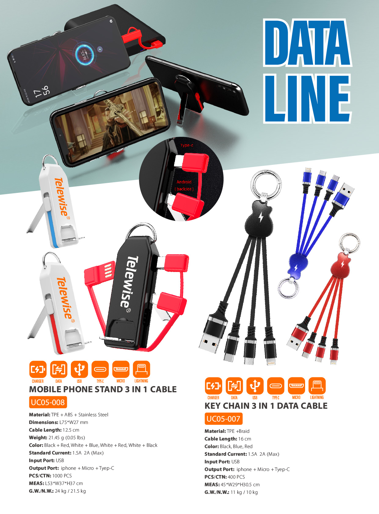 Key Chain 3 In 1 Data Cable with Phone Stand