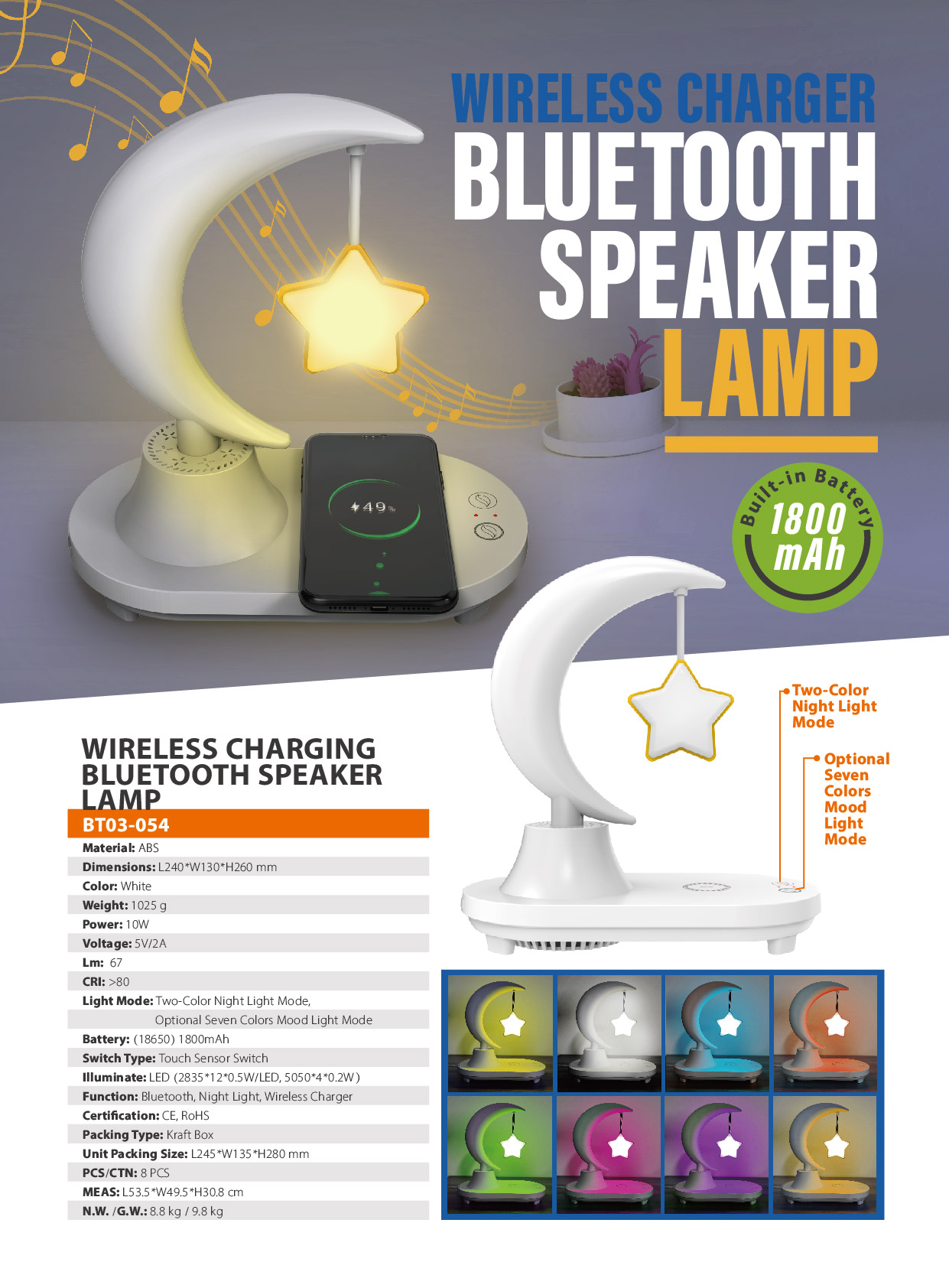 BT03-054Function: Bluetooth, Night Light, Wireless Charger