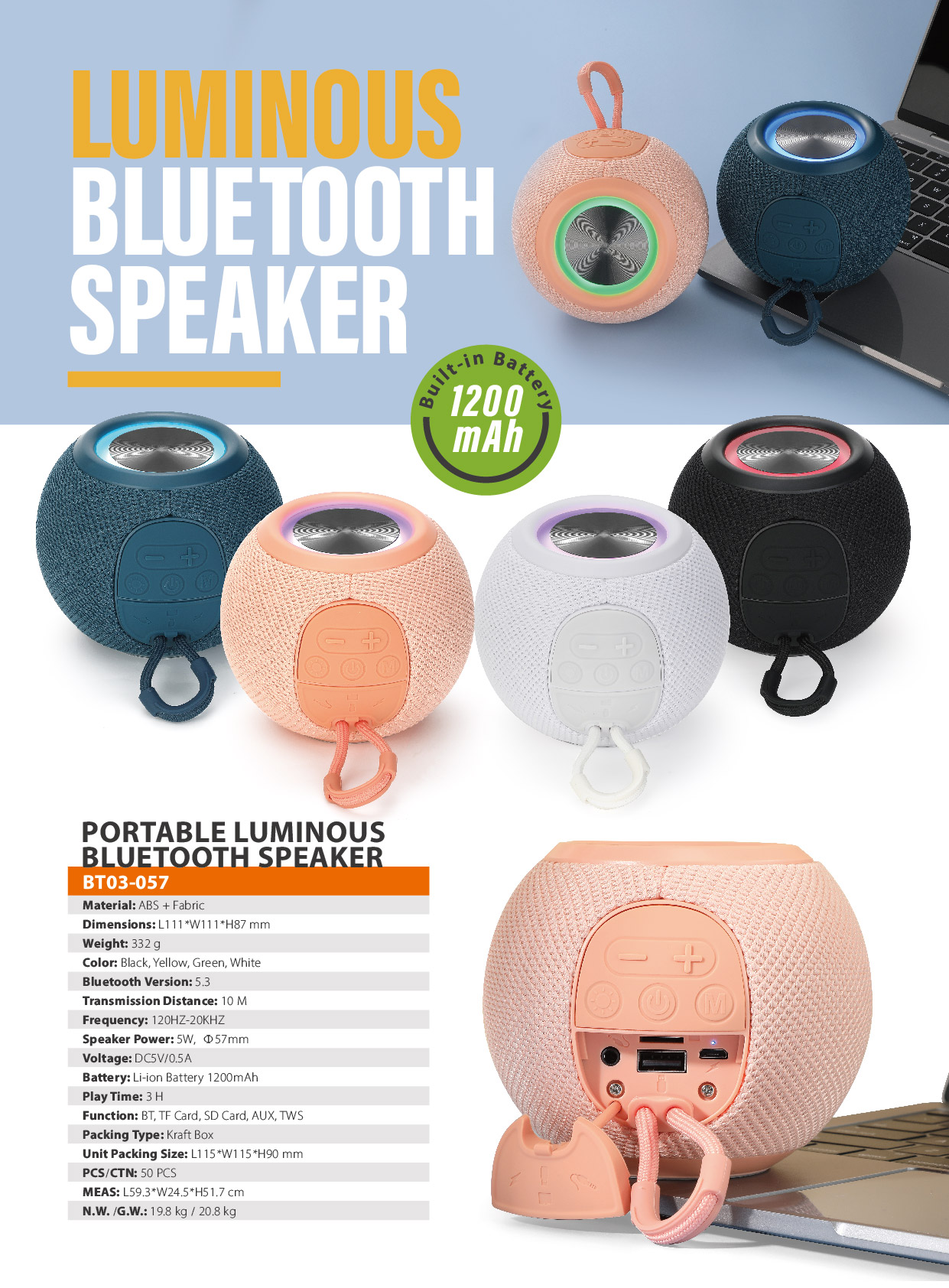 BT03-057Function: BT, TF Card, SD Card, AUX, TWS