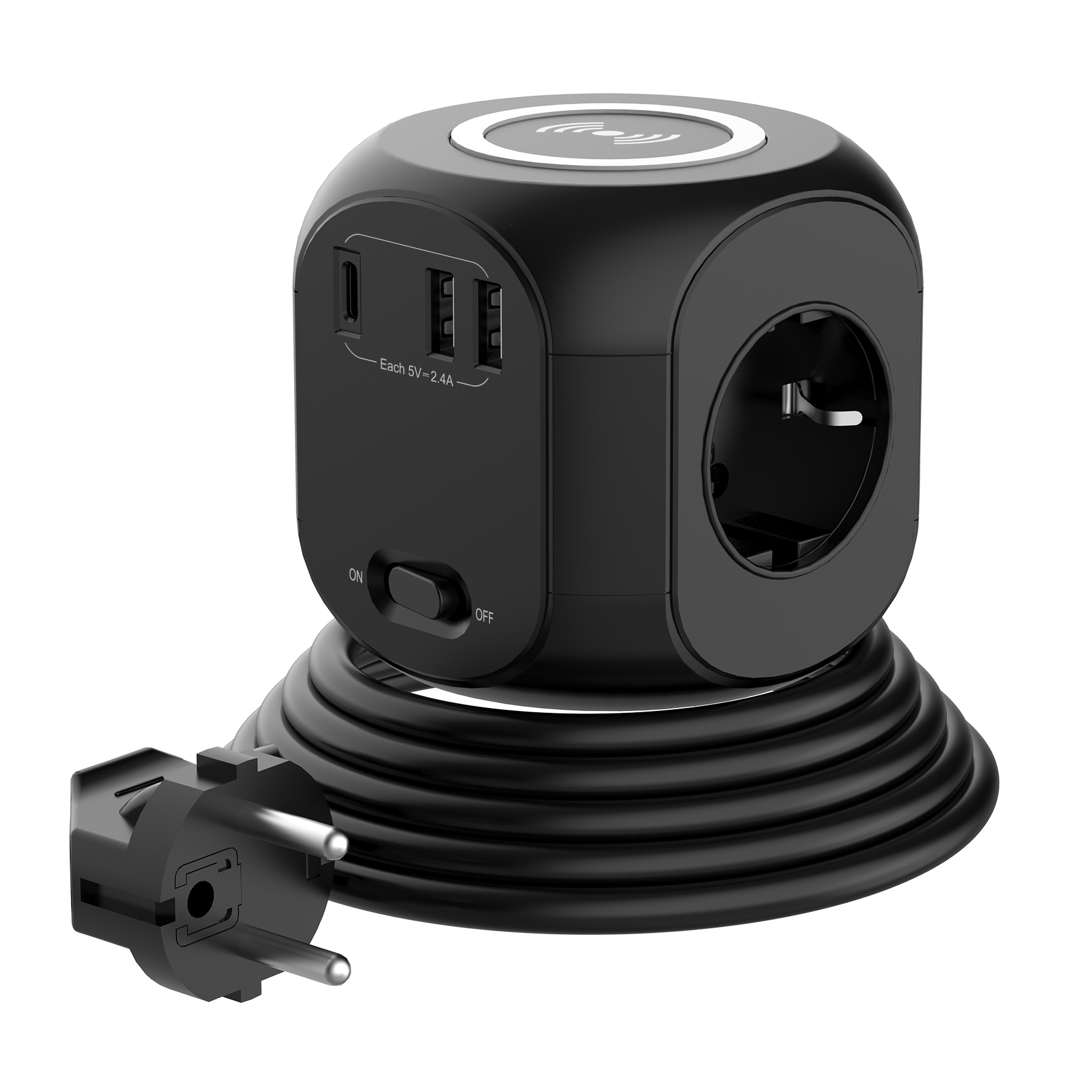 3-Ways Power Cube with Wireless Charger