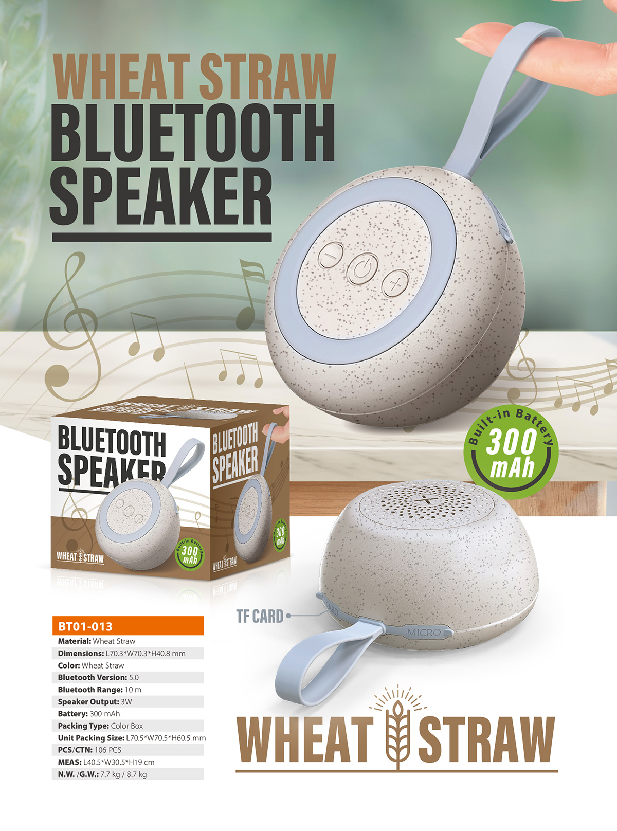 Wheat Straw TF-Card Bluetooth Speaker