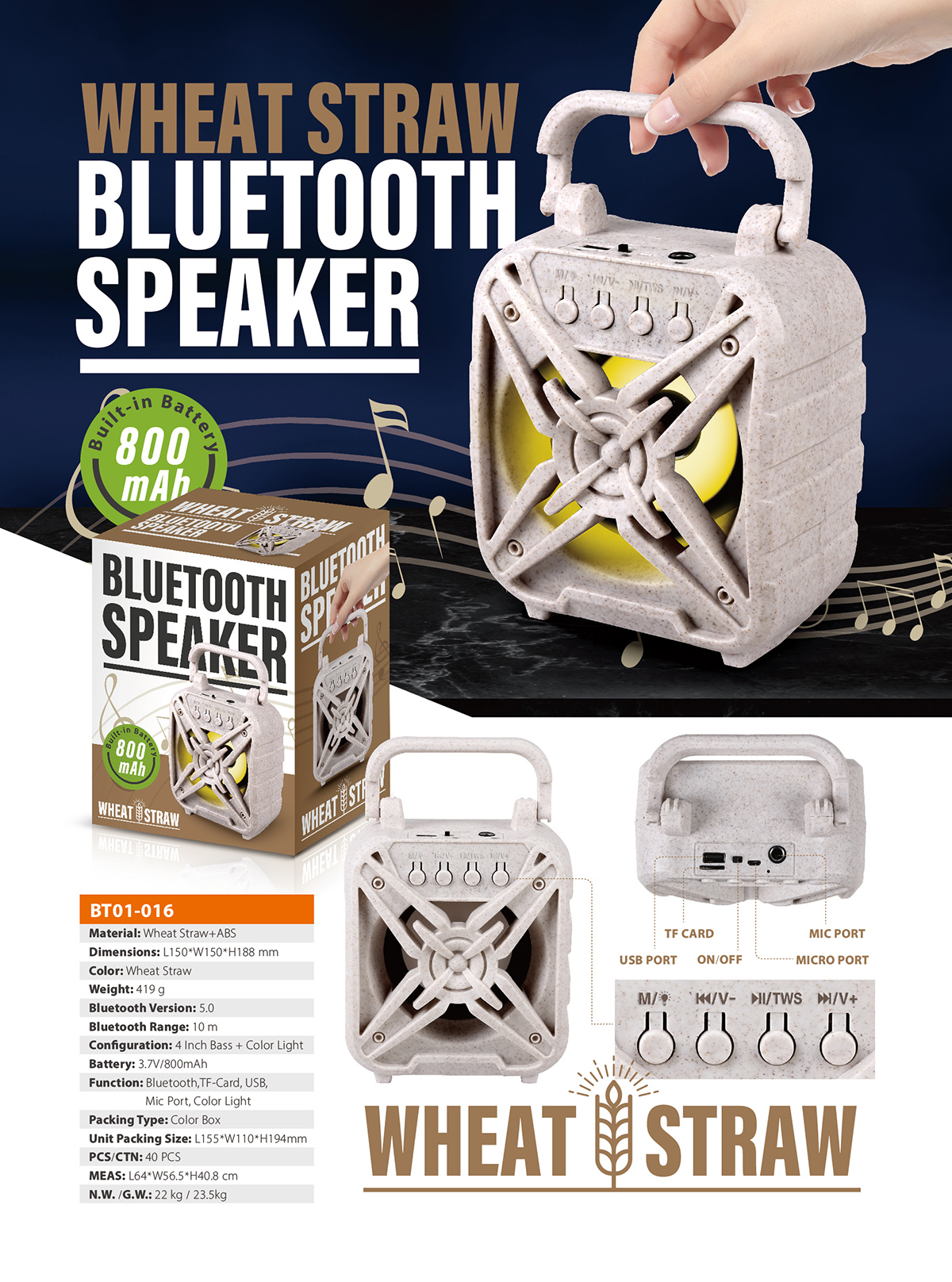 Wheat Straw TF-Card Bluetooth Speaker