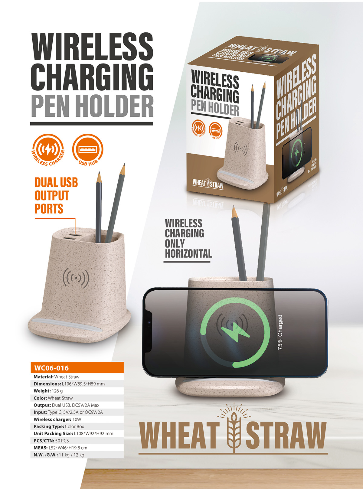 WC06-016Wheat straw material, Universal charging compatibility with any Qi enabled device. (wireless charging horizontal)