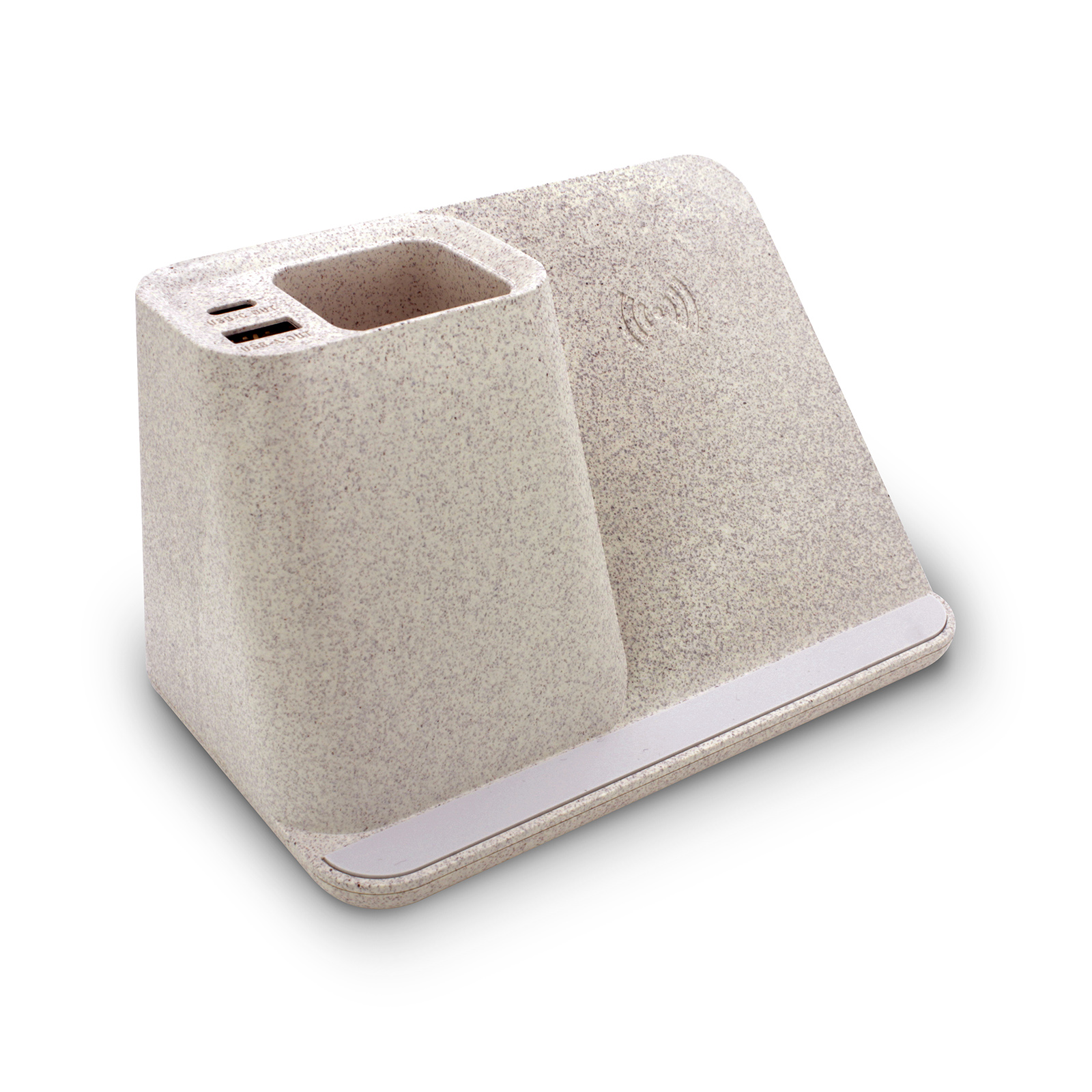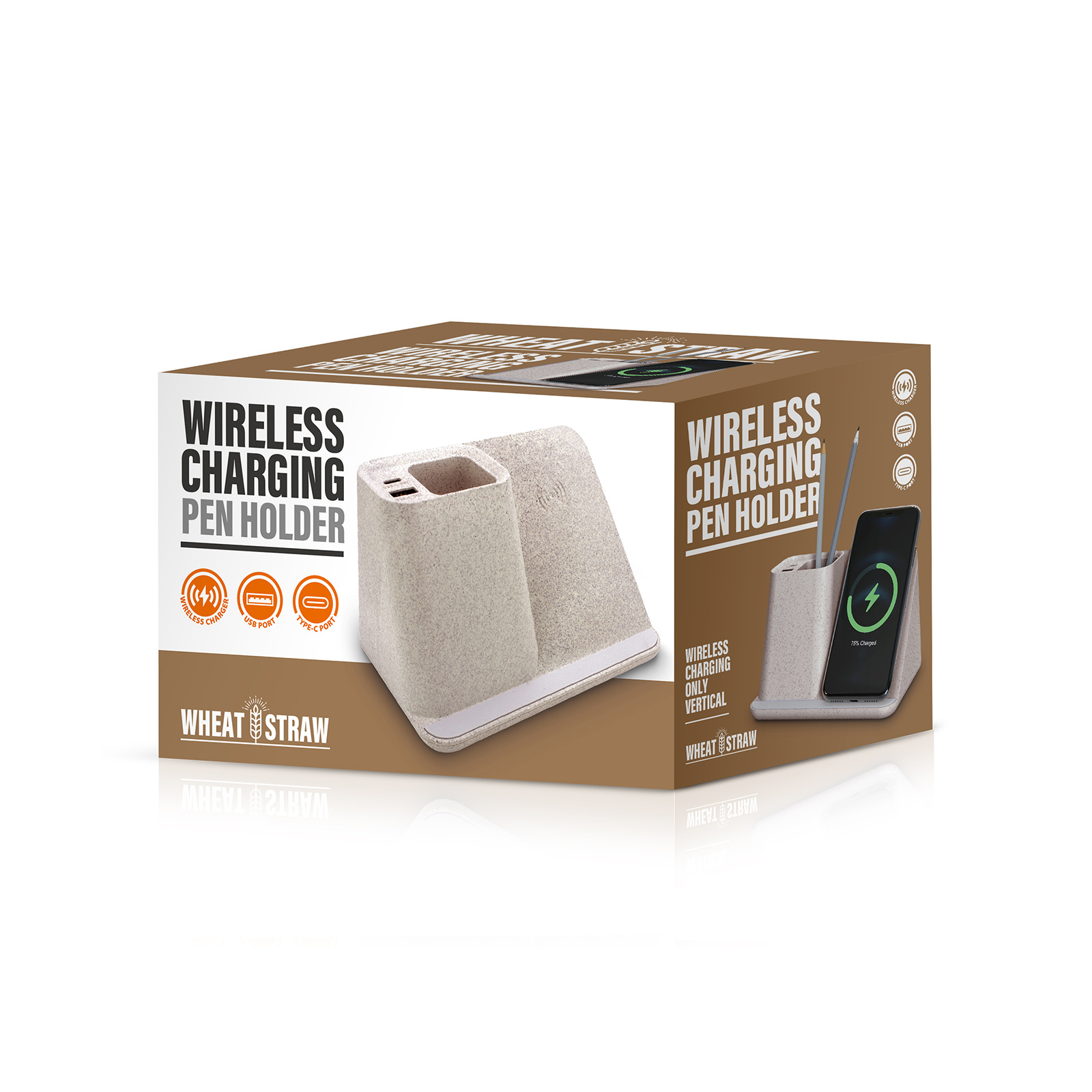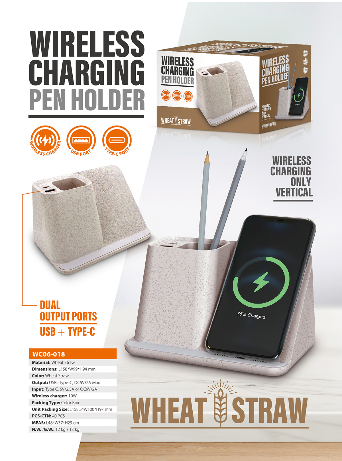 WC06-018Wheat straw material, Universal charging compatibility with any Qi enabled device. (wireless charging vertical)