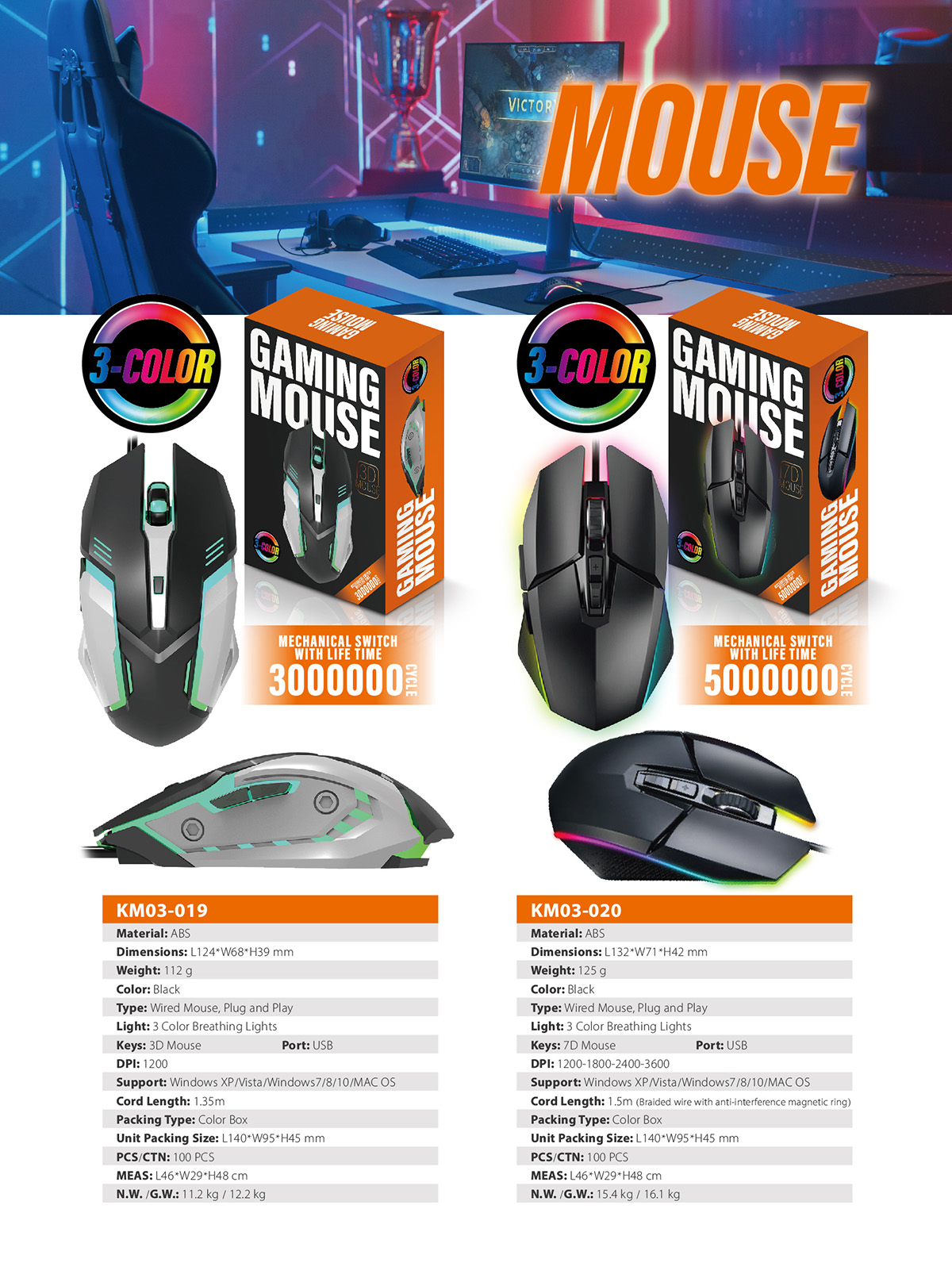KM03-020The colorful backlit can bring you into a great gaming atmosphere. Mechanical switch with life time 5 million cycles.