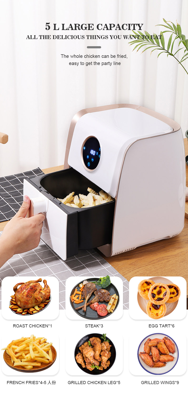 4pre-set Cooking Programs For French Fries, Fish, Drumstick And Steak.