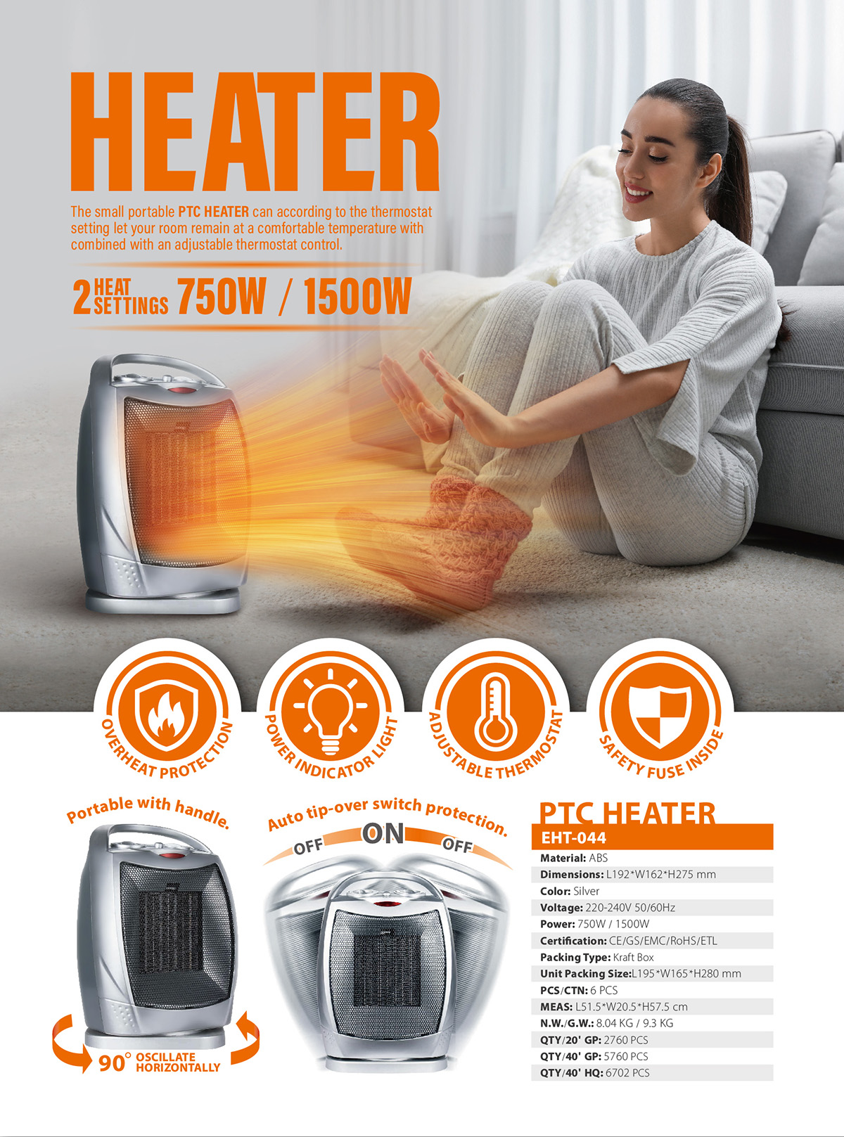 - Certification : CE/GS/EMC/RoHS/ETL